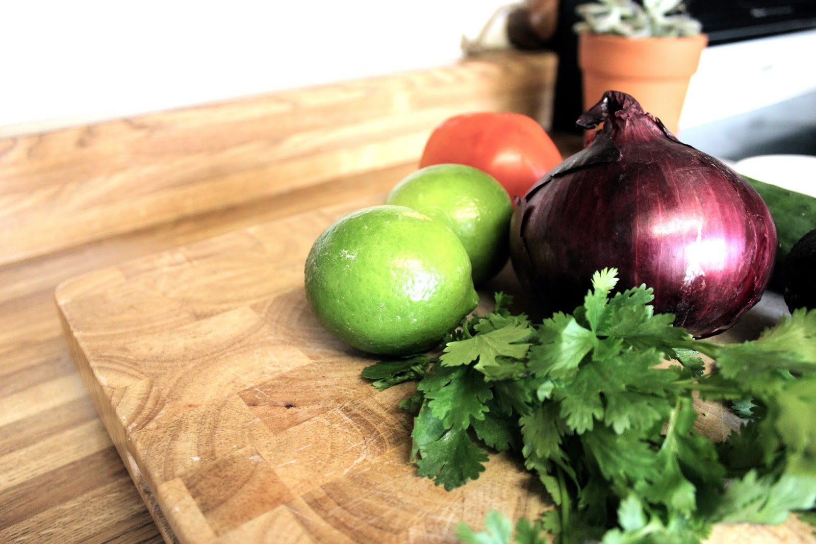 2. Dice onion, cucumber, jalapeno, cilantro, and tomato. Make sure you dice your ingredients really small or super fine.